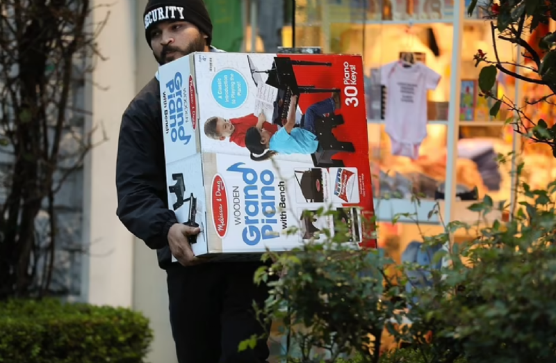El ajetreado día significó varias paradas en tiendas de lujo en juguetes para lo más pequeños. Rihanna junto a su equipo parecían querer llevarse todo a su paso, pero quedaron notoriamente enamorados de un pequeño piano, el que más tarde fue cargado por su guardaespaldas hacia el vehículo que los transportaba. Por su tamaño, se presume que fue pensado para el primer hijo de la cantante, cuyo nombre es aún un misterio.