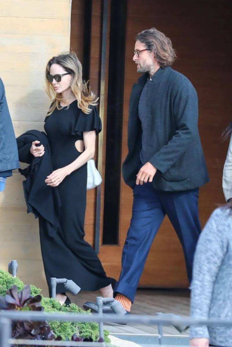 En las imágenes difundidas por el medio estadounidense, se vio a la estrella de Maléfica sonriendo y muy feliz mientras salía del establecimiento de comida en compañía del ecologista británico. Para la salida, Jolie usó un elegante vestido negro con recortes que mostraban su abdomen.