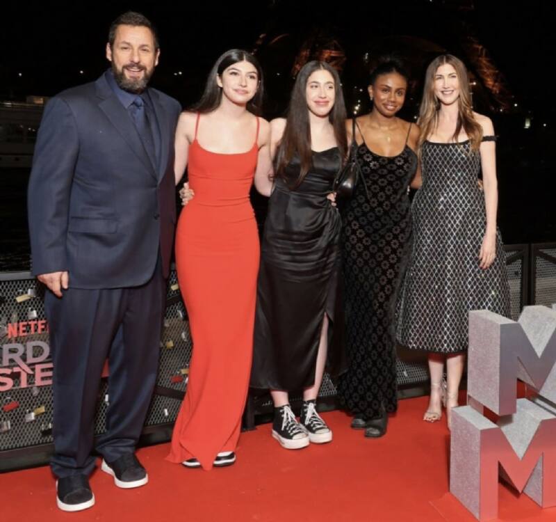 Sadie (16) y Sunny Sandler (14), las hijas del actor estadounidense, Adam Sandler, se robaron todas las miradas al hacer una rara aparición junto a su padre en el estreno de la nueva película del comediante “Misterio a la vista”, en Francia.