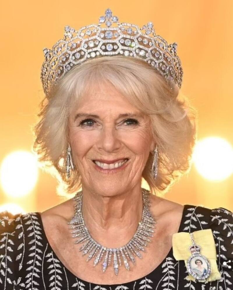 La Greville Tiara pasó luego a manos de Isabel II, quien se la obsequió en 2007 a Camila para sus 60 años. La joya que hizo brillar la soberana en la primera recepción oficial del gobierno alemán, fue la que dejó asombrados a los selectos invitados que departieron con los reales británicos.
