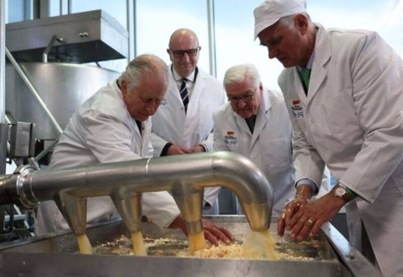 Carlos III fue invitado a ayudar a esparcir el queso en moldes. "Haré lo mejor que pueda", respondió con una sonrisa.