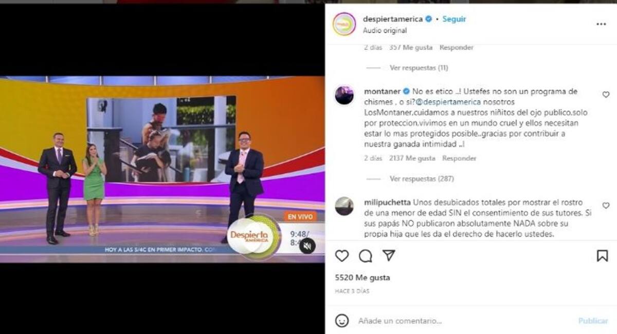 “No es ético...! Ustedes no son un programa de chismes, o si?@despiertamerica nosotros Los Montaner, cuidamos a nuestros niñitos del ojo público, solo por proteccion, vivimos en un mundo cruel y ellos necesitan estar lo más protegidos posible...gracias por contribuir a nuestra ganada intimidad...!”, escribió el cantante.