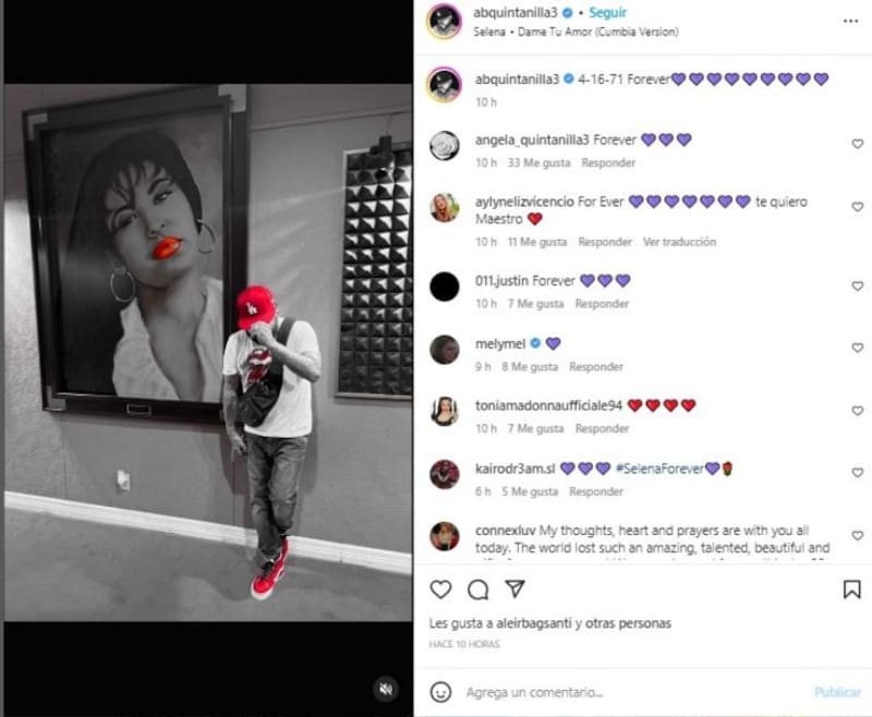 Abraham Quintanilla (55), conocido artísticamente como A.B. Quintanilla y hermano mayor de Selena, posteó una imagen de sí mismo con un cuadro de su fallecida hermana para recordarla en este día. Mientras que su otra hermana, Suzette Quintanilla (53), publicó una serie de fotografías de la cantante con el mensaje: “A veces no se necesitan palabras...”.