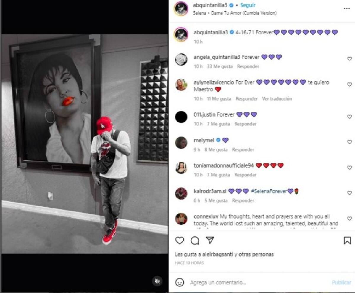 Abraham Quintanilla (55), conocido artísticamente como A.B. Quintanilla y hermano mayor de Selena, posteó una imagen de sí mismo con un cuadro de su fallecida hermana para recordarla en este día. Mientras que su otra hermana, Suzette Quintanilla (53), publicó una serie de fotografías de la cantante con el mensaje: “A veces no se necesitan palabras...”.