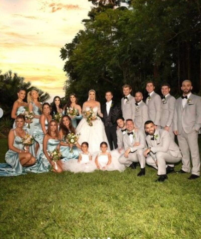 Lele y Guaynaa con las Damas de Honor y los padrinos del novio
