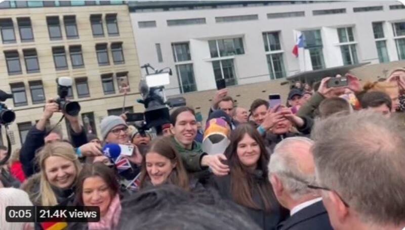 Fue a través de Twitter que la periodista Rebecca English, del Daily Mail, compartió el video del espontáneo momento: “Grandes escenas hoy durante el primer paseo del Rey en Berlín. Le ofrecieron cariñosamente una corona, una de papel de Burger King, por parte de un simpatizante que le dijo cortésmente: ‘Esto es para ti, si lo quieres’. Charles sonrió ampliamente y dijo: '¡Estoy bien!'”, provocando las risas de los presentes.