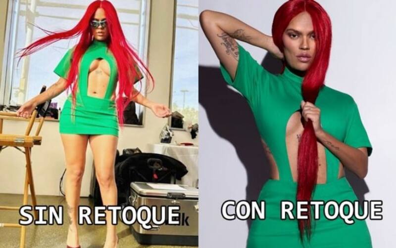 En la foto elegida para ser la portada de la nueva edición, se puede apreciar los retoques que le hicieron al cuerpo de Karol G, como pronunciar sus pómulos, disminuir sus mejillas, aumentar sus labios y adelgazar su cuerpo hasta crear una imagen totalmente irreal de “La Bichota”.