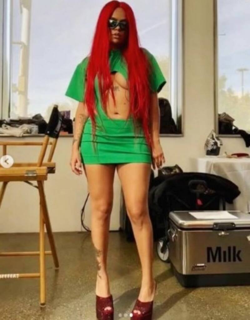 A través de una de las cuentas de los fanáticos de Karol en Instagram se puede ver a la cantante con el vestido verde que usó para la sesión de fotos y su larga cabellera roja que la caracteriza, mientras se prepara para posar a la cámara. En las imágenes se observa claramente la realidad de cómo es Karol G, muy diferente a lo que publicó GQ.