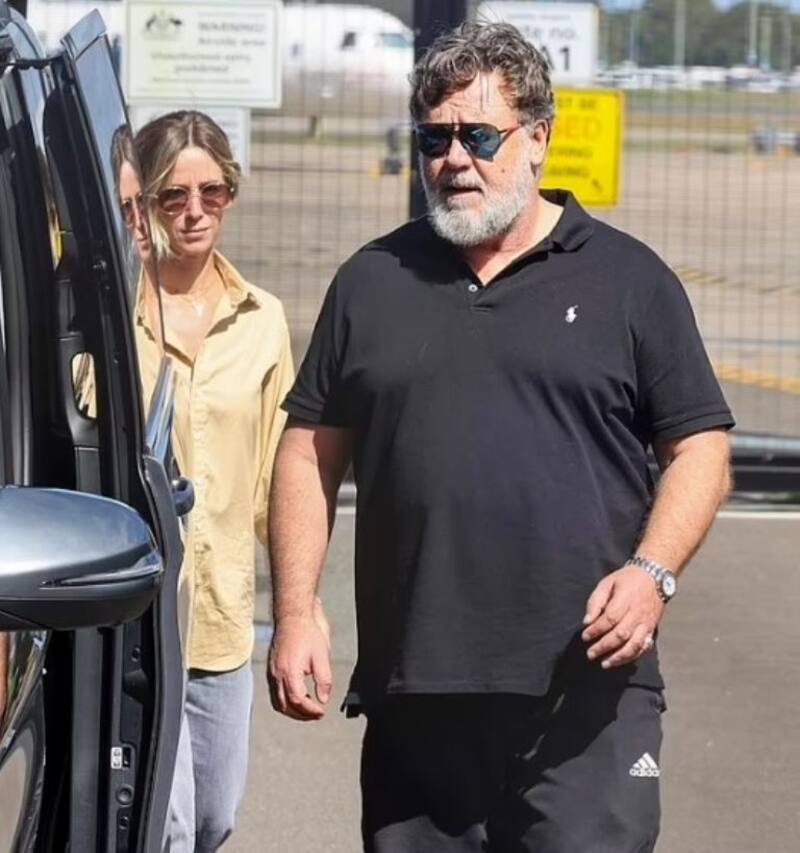 El actor nacido en Nueva Zelanda, cada vez más alejado de Hollywood, reapareció en un aeropuerto de Sydney, Australia, junto a su pareja Britney Theriot, bajándose de su jet privado, vistiendo un buzo deportivo y una camiseta polo que no ocultaba una descomunal barriga.