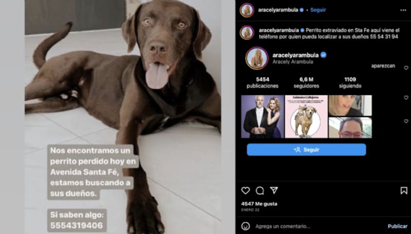 "A los que realmente le gustan las mascotas, les preguntan su nombre, gracias Bella por regalarme un poquito de ternura y cariño", escribieron en la plataforma de Rafaela Castro el fin de semana pasado junto a una foto en la que sale con Aracely Arámbula y un chachorrito