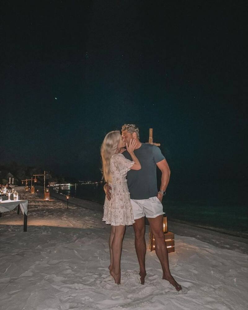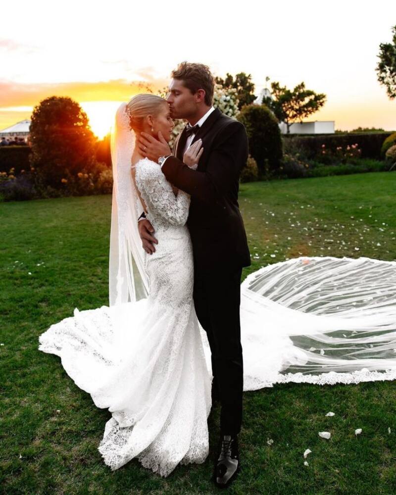 En las fotos puede verse a detalle su atuendo y el de su esposo, pero además ambos posan en un arco de rosas blancas, en otras más aparecen iluminados con el atardecer mientras se funden en un tierno beso. Amelia además compartió unas postales de su segunda semana de vacaciones en Conrad Maldives con unas impresionantes imágenes del mar.