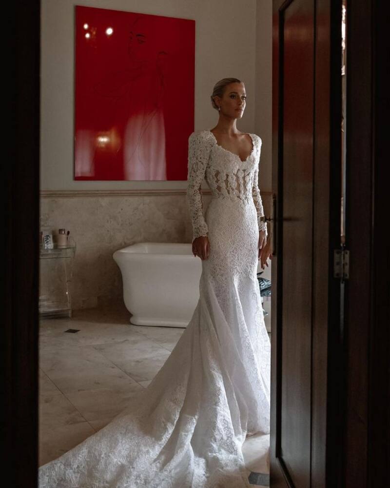 A través de su cuenta de Instagram, la modelo publicó algunas fotografías de aquel momento mágico y de su impresionante vestido de novia confeccionado por Atelier Versace en un modelo exclusivo para ella, y que mantiene una conexión especial con su difunta tía y es que Lady Di tenía una marcada preferencia por la maison de lujo.