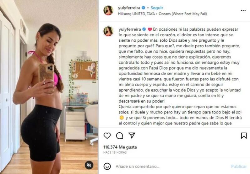 “Estoy muy agradecida con Papá Dios porque me dio nuevamente la oportunidad hermosa de ser madre y llevar a mi bebé en mi vientre casi 10 semana, que fueron fuertes pero las disfruté con mi alma cuerpo y espíritu, estoy en el camino de seguir aprendiendo, de escuchar la voz de Dios y yo acepto la voluntad de mi padre y sé que su mano me guiará, confío en El y descansaré en su poder!”, escribió la colombiana.