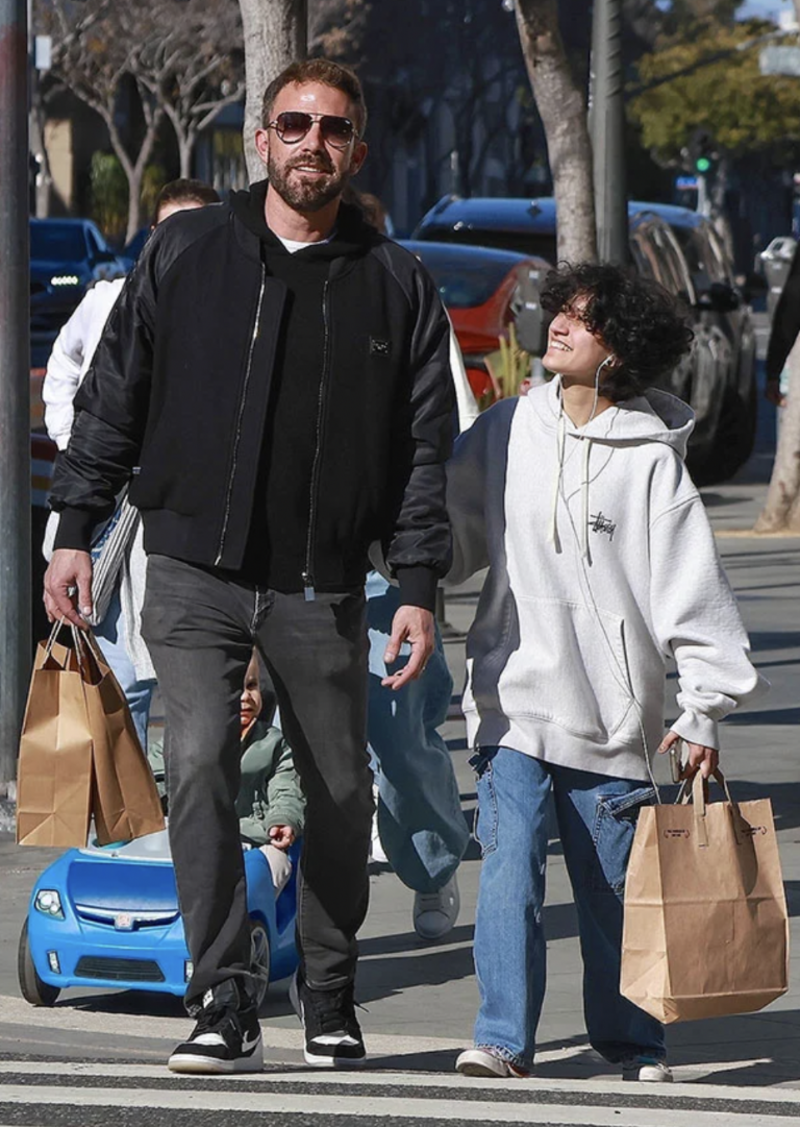 El actor y su hijastra dieron un paseo cerca de la casa de Ben, en Pacific Palisades, y todo parece indicar que comieron juntos en un restaurante y también se llevaron lo que les sobró en unas bolsas de papel que ambos cargaban.