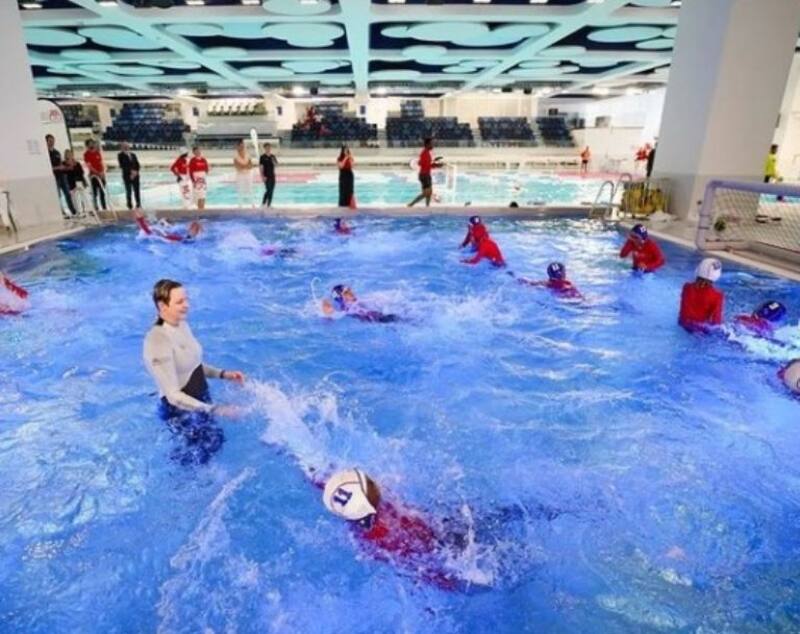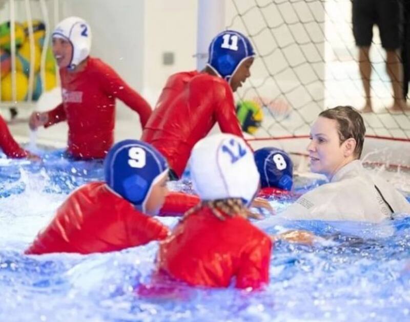 La princesa Charlene se volvió a poner el traje de baño este viernes para ingresar a la piscina del Stade Louis II para enseñar las bases de la natación a los 85 niños que participarán en el torneo de rugby Sainte Dévote. esta vez, el ausente fue el príncipe Alberto de Mónaco.