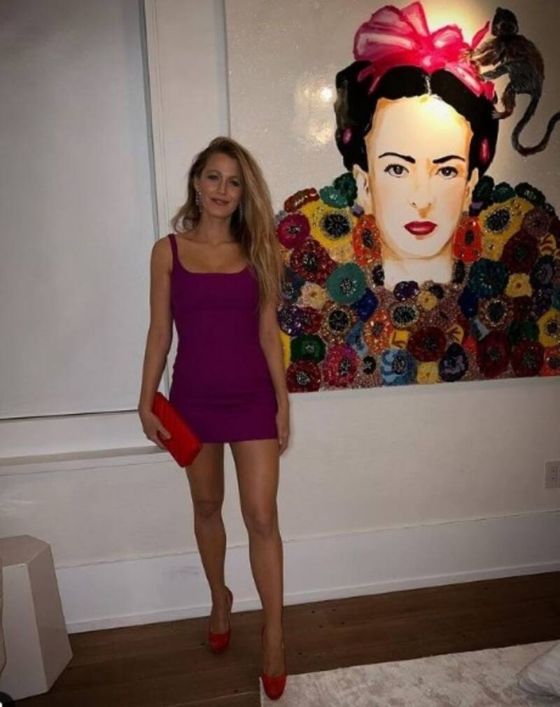 La modelo, diseñadora y también empresaria, que en febrero fue madre de su cuarto hijo con Ryan Reynolds, aparece con su espectacular figura luciendo un vestido mini color púrpura, evocando un momento cuando quiso compartir esa fotografía.