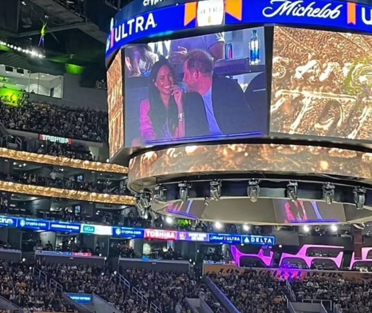 El príncipe Harry y Meghan Markle reaparecieron en público riéndose y haciendo muecas en la pantalla gigante de un juego de baloncesto de la NBA, a poco más de dos semanas de la coronación del Rey Carlos III.