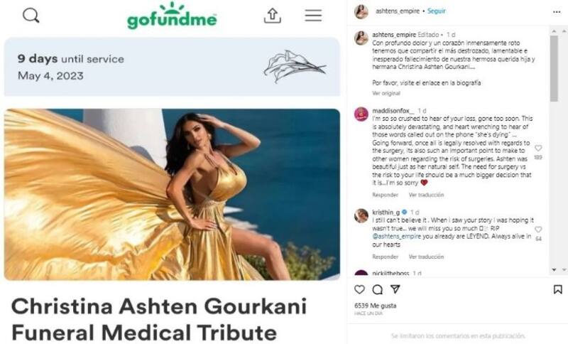 “Con profundo pesar y con el corazón roto tenemos que compartir el fallecimiento más desgarrador, desafortunado e inesperado de nuestra hermosa, amada hija y hermana Christina Ashten Gourkani”, comunicó la familia en una publicación de Instagram, realizada desde la cuenta oficial de la modelo.