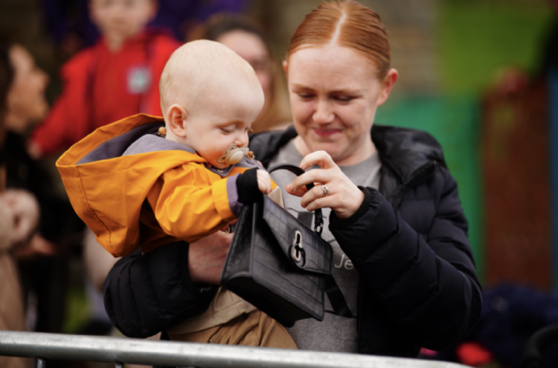 Fue mientras la princesa de Gales conversaba con la mamá Lucy, que el bebé Daniel Williams, de 1 año, agarró el bolso de Mulberry con estampado de cocodrilo para jugar con él ante el asombro y la sonrisa de la esposa de William.