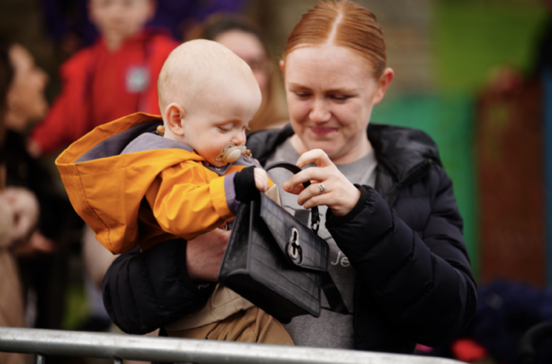 Fue mientras la princesa de Gales conversaba con la mamá Lucy, que el bebé Daniel Williams, de 1 año, agarró el bolso de Mulberry con estampado de cocodrilo para jugar con él ante el asombro y la sonrisa de la esposa de William.