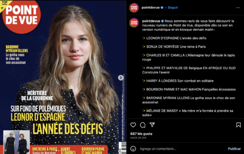 Y fue la revista francesa “Point de vue”, especializada en realeza con el titular que le dedicó su más reciente portada a la hija de la reina Letizia con el titular: “Leonor de España, el año de los desafíos: En un contexto de polémicas”.