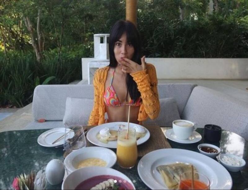 El mensaje estuvo acompañado de una secuencia de fotografías donde si bien la cantante aparece sola, deja claramente establecido que su fotógrafo personal no e sotro que su actual novio, el colombiano Sebastián Yatra, quien se esmera en lucir a su hermosa pareja.