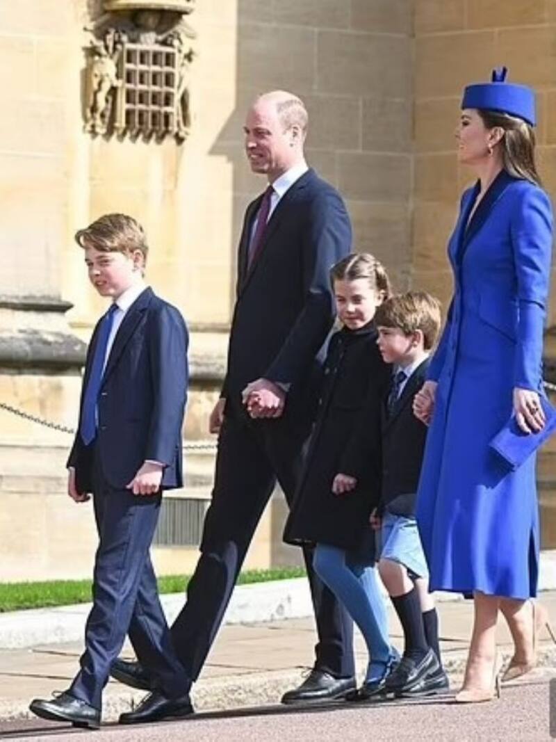 La familia de Gales se ubicó en el grupo de los más jóvenes de la realeza, entre quienes se quedaron más atrás del desfile de dignatarios que caminó desde el castillo de Windsor hasta la Capilla de San Jorge, en un día marcados por dos efemérides relevantes para la familia real: el décimo octavo aniversario de bodas de Carlos III y la reina Camila, y el segundo aniversario de la muerte del príncipe Felipe.