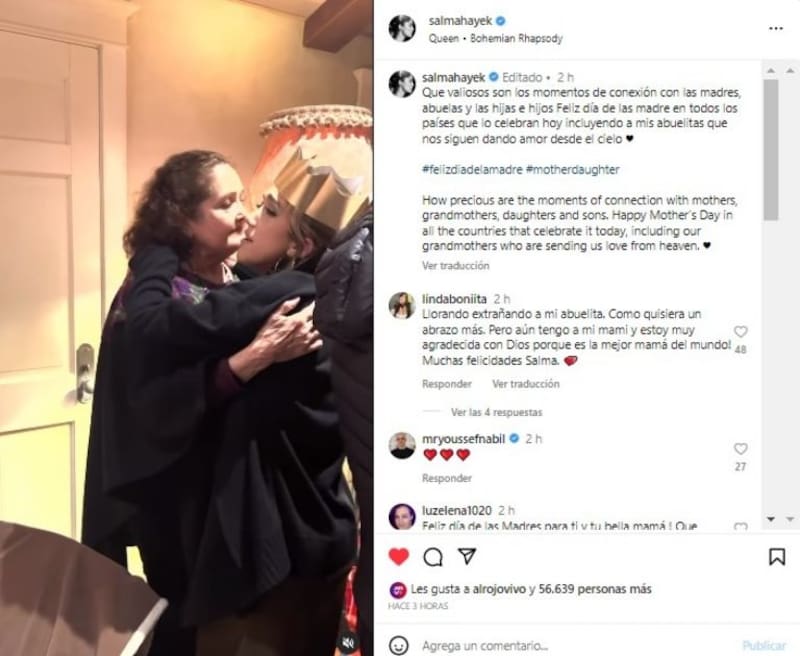 “¡Feliz día de las Madres para ti y tu bella mamá! Que hermoso momento nos compartes”, “El momento más tierno entre abuela y nieta”, “Ellas dos son demasiado dulces”, “Tus dos reinas, Salma”, “Ambas representando la esencia de la vida y del amor”, “Que precioso momento capturaste, Salma”, son algunos de los mensajes que le dejaron a la actriz.