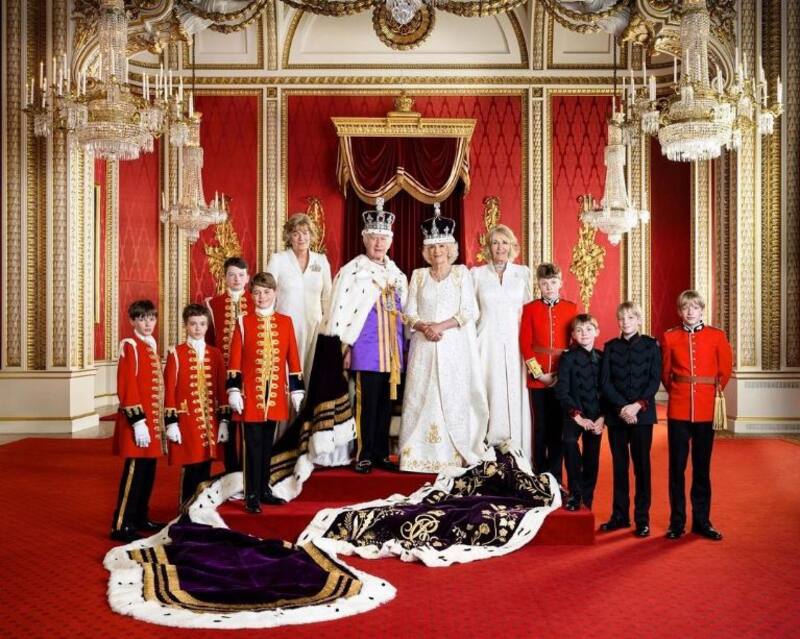 En una de las imágenes se ve a los nuevos reyes, Carlos III así como su esposa Camila, quien no usará el término consorte, en compañía de sus pajes de honor. Durante la ceremonia los monarcas dispusieron de cuatro pajes cada uno para su asistencia. Los soberanos eligieron a sus familiares, y el rey quiso que estuviera entre ellos el príncipe George, el hijo de su primogénito. las fotos fueron tomadas por Hugo Burnand.