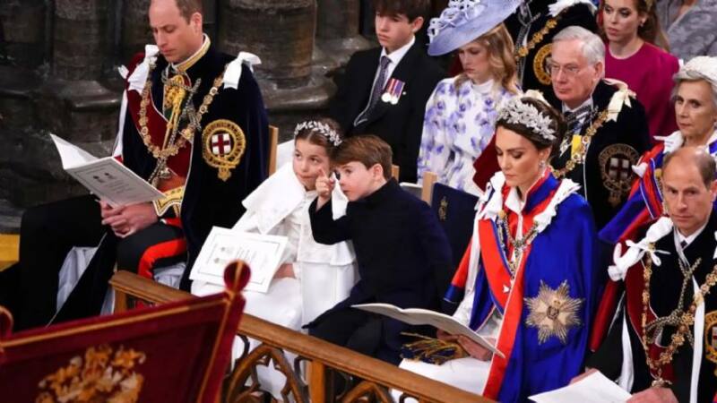 Se logra ver la sonrisa nerviosa de Charlotte, que evidencia claramente su entusiasmo por presenciar uno de los días más importantes de su abuelo, pero también se ve al príncipe Louis tratando de mantener la compostura con gran seriedad, algo poco inusual en él, ya que siempre sorprende con sus tiernos gestos.