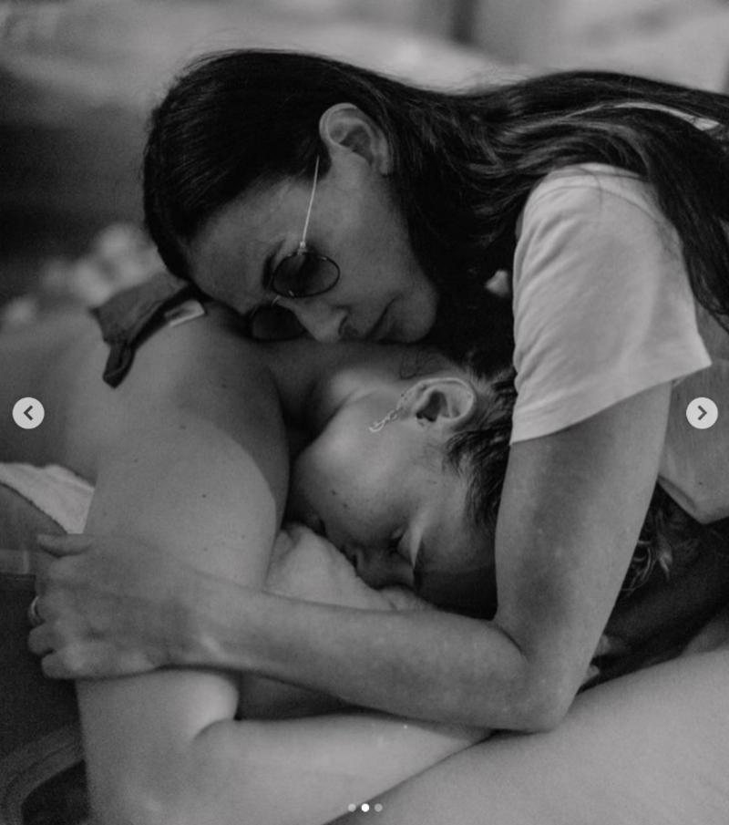 En otra foto se ve a la actriz abrazando a s hija Rumer Willis mientras la joven está en labor de parto y además incluyó una foto de ella embaraza y sin ropa en un campo rodeada de naturaleza.