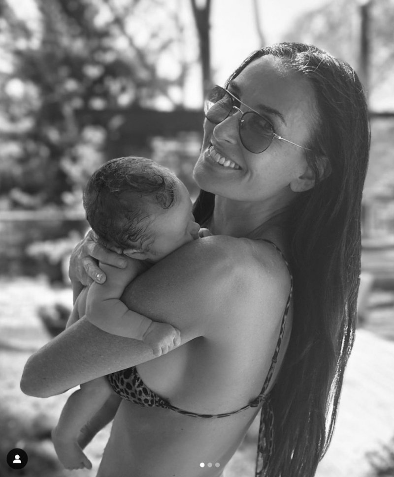 Demi Moore (60) mostró por primera vez a su nieta, Louetta Isley, hija de Rumer Willis y lo hizo muy a su estilo, ya que demostró que siendo abuela continúa siendo muy guapa y atractiva y lo mostró posando en bikini con la bebé en brazos.