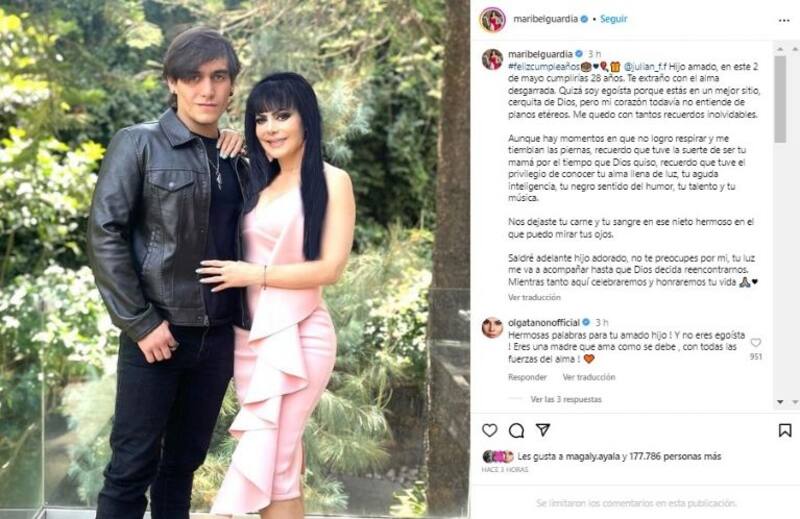 “Feliz cumpleaños, Julián. Hijo amado, en este 2 de mayo cumplirías 28 años. Te extraño con el alma desgarrada. Quizá soy egoísta porque estás en un mejor sitio, cerquita de Dios, pero mi corazón todavía no entiende de planos etéreos. Me quedo con tantos recuerdos inolvidables. Aunque hay momentos en que no logro respirar y me tiemblan las piernas, recuerdo que tuve la suerte de ser tu mamá por el tiempo que Dios quiso”, escribió la también cantante en el post.