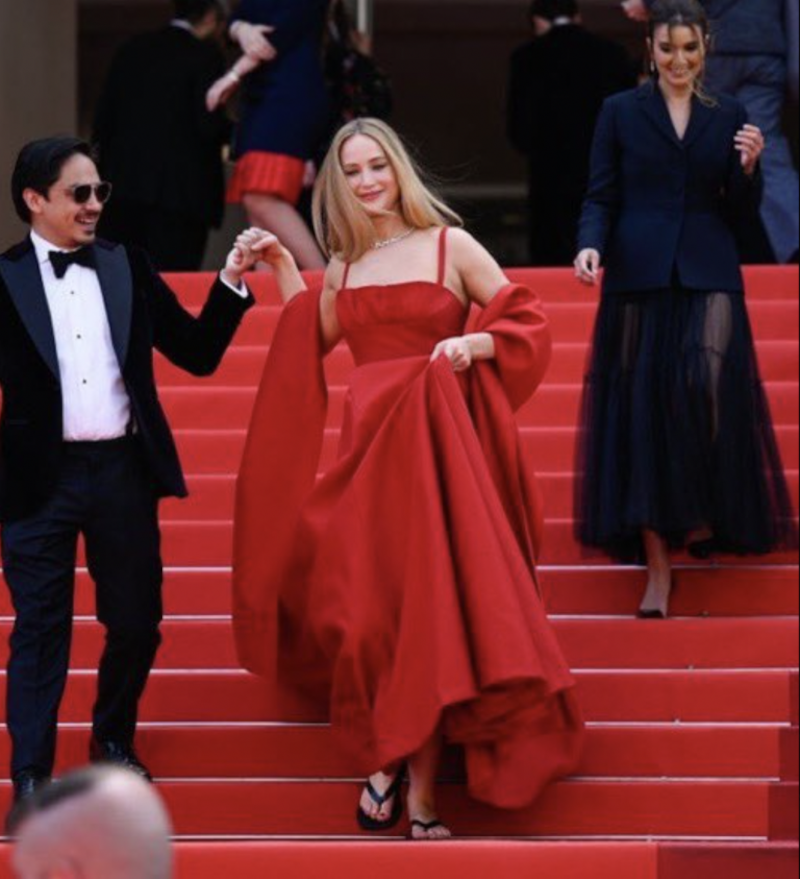 Una de las estrellas que más ha dado de qué hablar durante el Festival de Cannes 2023 fue la actriz Jennifer Lawrence (32), quien ponderó la comodidad al glamour y llegó a la alfombra roja en chanclas para evitar los incidentes que ha protagonizado en otros eventos en los que ha terminado en el suelo.