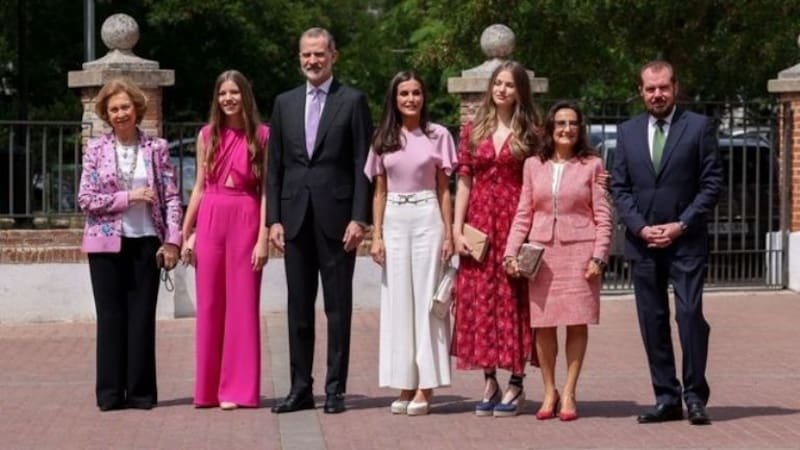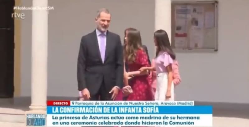El pasado jueves 25 de mayo, los reyes de España junto a sus hijas llegaron a la parroquia de la Asunción de Nuestra Señora de Aravaca para celebrar el acto religioso de Sofía. Su entrada fue armoniosa y espléndida, donde posaron sonrientes hacia las cámaras con trajes combinados entre sí para la ocasión.