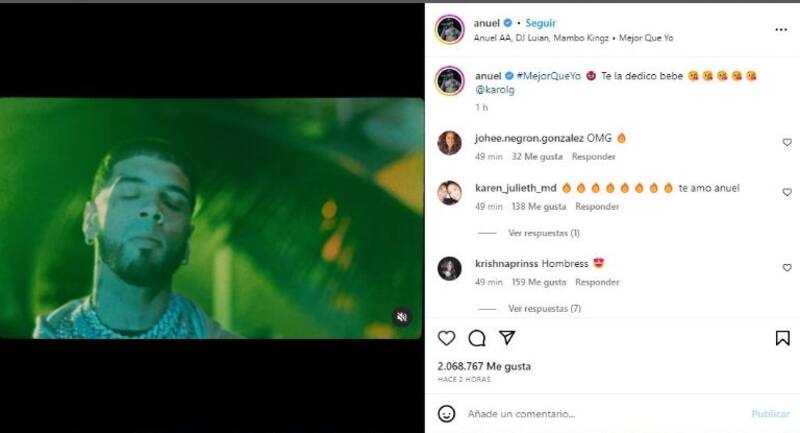Anuel AA (29) sigue dando de qué hablar, al dedicarle su nueva canción a su ex pareja, Karol G (28), al etiquetarla en una publicación en sus redes sociales con un pequeño adelanto del tema, en el cual habla sobre una relación que terminó aunque en la cama, asegura, nunca serpa mejor que él. Un tema que está causando polémica por el extraño mensaje que dejó.
