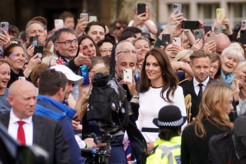 La futura reina participó de una caminata junto con su esposo, el príncipe William y su suegro, el Rey Carlos III. De hecho, Kate conversó con algunos de los presentes durante el paseo.