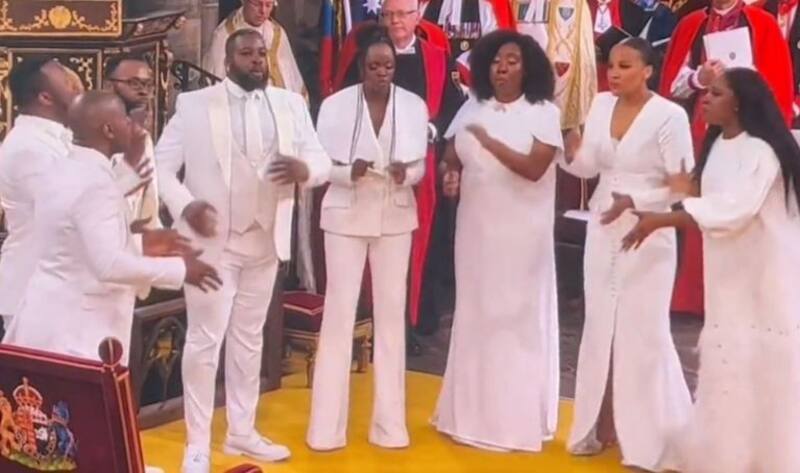 El octeto, dirigido por Abimbola Amoako-Gyampah, cantó Aleluya (O Sing Praises) de la compositora Debbie Wiseman y es la primera vez que un coro de este tipo se presenta para una coronación en la Abadía de Westminster, según pudo constatar Page Six. En la boda de Harry el coro interpretó Stand by me de Ben E. King en la Capilla de San Jorge en el Castillo de Windsor.