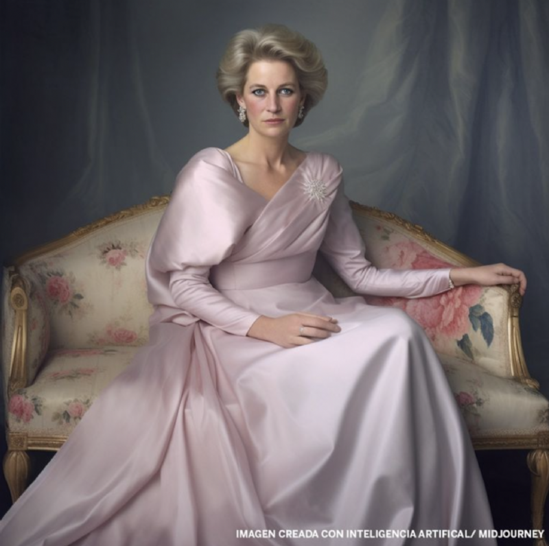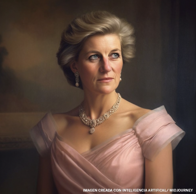 Por esta razón es que en Twitter se volvió viral una imagen compartida por el usuario “Raúl Gutiérrez” y generada con inteligencia artificial en la que se puede apreciar una foto de Diana de Gales modificada para hacerla ver de aproximadamente 61 años (la edad que tendría de seguir viva) y vestida elegantemente con una tiara y los pendientes de perla que usó Kate Middleton en la coronación.