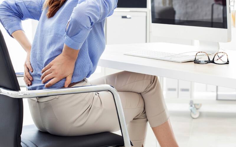 - Mala postura al sentarse o pararse durante largos períodos.