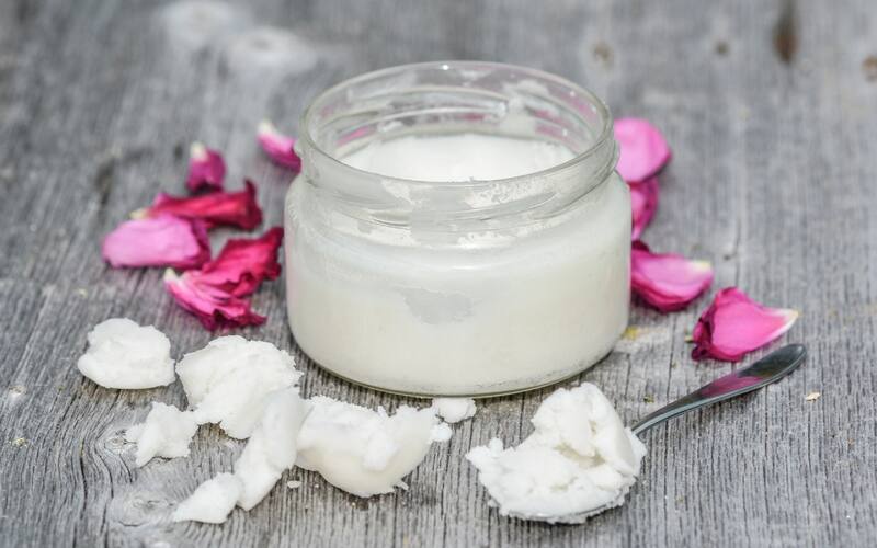 - En un recipiente resistente al calor, mezcla la cera de abeja, el aceite de almendras, el aceite de coco y la manteca de cacao.