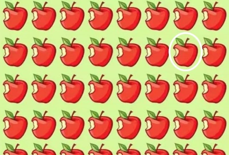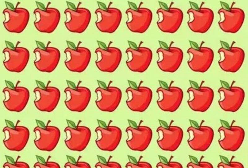 Incluso las personas con la visión más aguda y poderes de observación excepcionales están rascándose la cabeza para encontrar la manzana falsa en esta imagen. Pon a prueba tu IQ visual con este test. ¿Tienes una visión súper aguda como un águila? ¿Puedes identificar la manzana falsa en esta imagen? Tienes 5 segundos para resolver este test.
