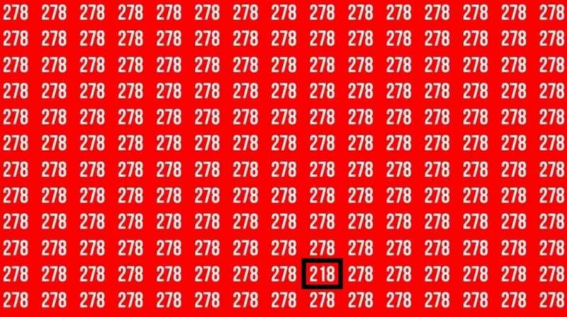 En esta particular ilusión óptica, se te presenta un mar de números 278. Sin embargo, oculto entre ellos, hay un número 218. ¿Puedes identificarlo en solo 3 segundos? Según las estadísticas, solo 1 de cada 10 personas con altos niveles de IQ y poder de concentración ha logrado encontrar el número 218 en ese breve lapso de tiempo.