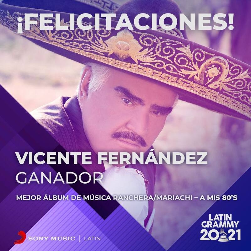 "El Charro de Huentitán" obtuvo la presea en la categoría de Mejor Álbum de Música Ranchera/Mariachi por su disco A mis 80's, el cual salió al mercado en 2020 y contiene 13 canciones. El intérprete de música regional mexicana estuvo en la misma terna que El Bebeto, Nora González, Christian Nodal y Pike Romero.