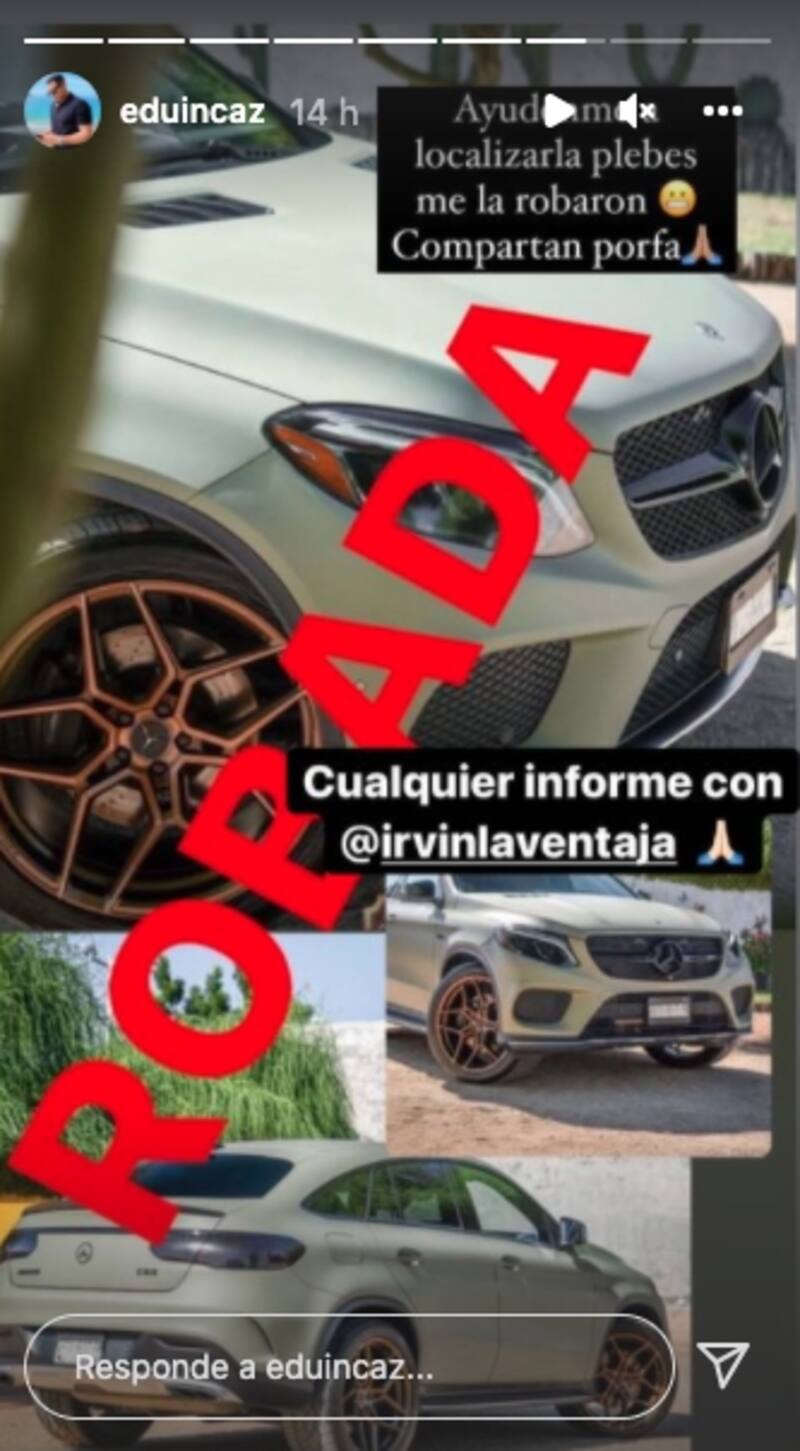 Luego del escándalo de infidelidad que protagonizó Eduin Caz, el vocalista de Grupo Firme, ahora está pasando por un mal momento nuevamente ya que le robaron su camioneta y pidió ayuda a sus seguidores para localizarla.