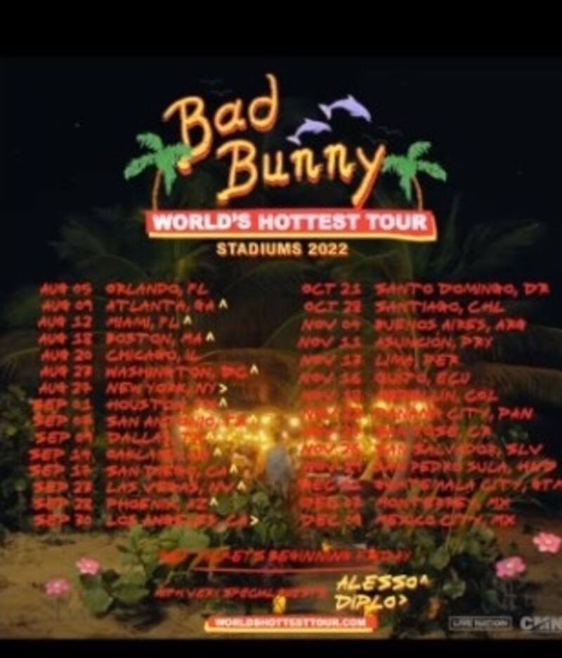 El puertorriqueño ofrecerá conciertos en toda Latinoamérica y algunas partes de Estados Unidos como Orlando, Dallas, Las Vegas y Los Ángeles, entre otras. Esto emocionó a los fans pues entre los escenarios más importantes donde se presentará está el Estadio Azteca de la Ciudad de México; el renovado Estadio BBVA de Monterrey: el Sofi Stadium de Los Ángeles; Yankee Stadium en Nueva York, entre más estadios destacados.
