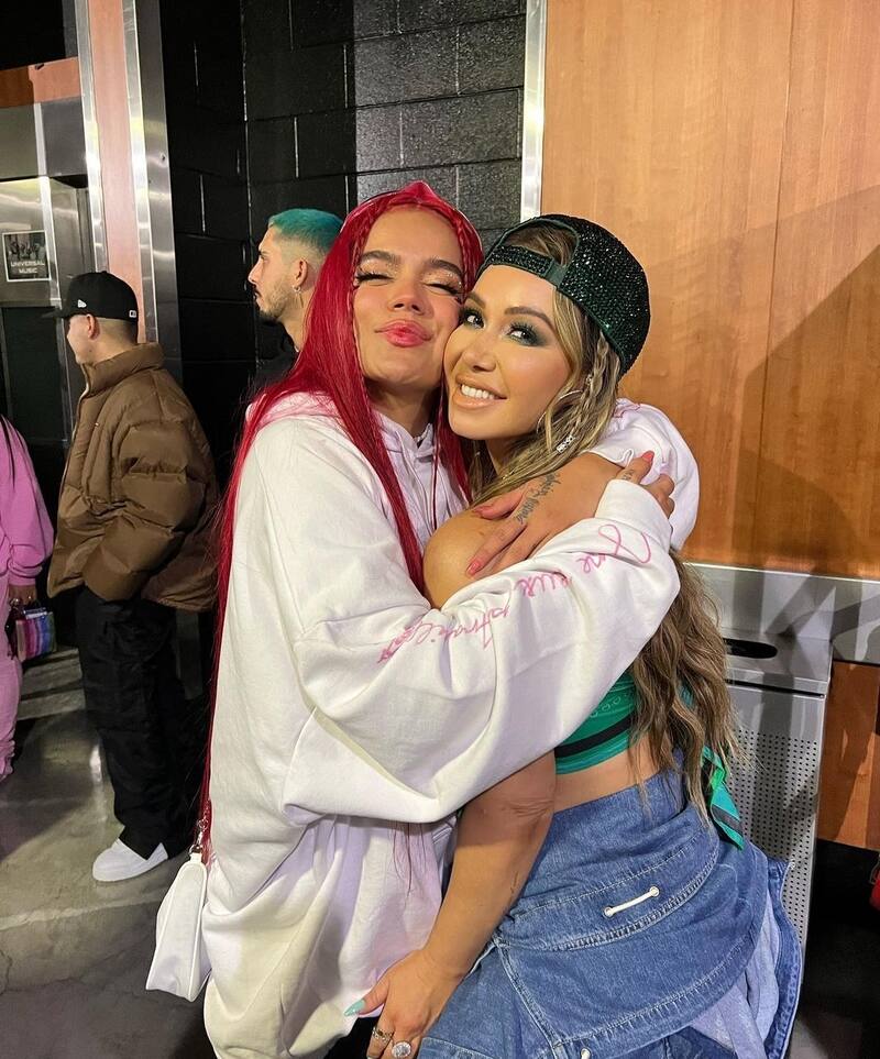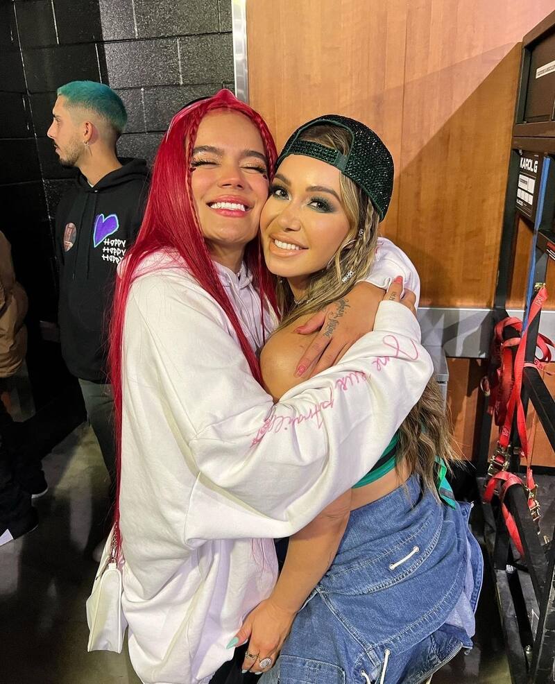"Gracias por todas tus atenciones mi @karolg. Eres un amor de persona y una diosa en el escenario. O sea, wow. Tqm", escribió Chiquis en el posteo que hizo en redes sociales. Sus seguidores reaccionaron eufóricos a las fotos a pesar de que a muchos les pareció extraño el gesto de la también empresaria, pero Karol no se vio molesta y también le siguió el juego.