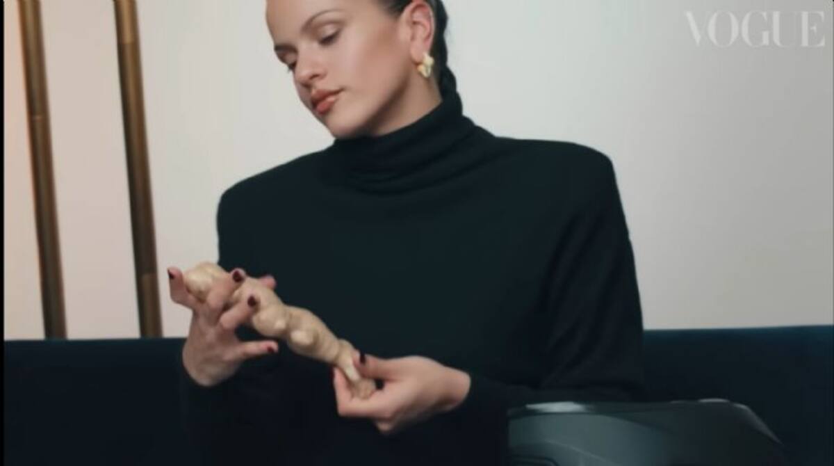 “Aguacate, siempre llevo aguacate en mi bolso porque me gusta mucho y es lo que uso cada día para desayunar. Literalmente cada día desayuno lo mismo: aguacate a la mitad, tostados, un poco de pavo y ya. Normalmente siempre está a punto”, dijo. “Llevo raíz de jengibre porque me encanta hacerme té y no me fío de que el té de la bolsita sea jengibre, jengibre. Entonces yo voy con mi raíz, la pelo, la corto, lo pongo en el té y para mí cómo que me da más vitaminas”, agregó.