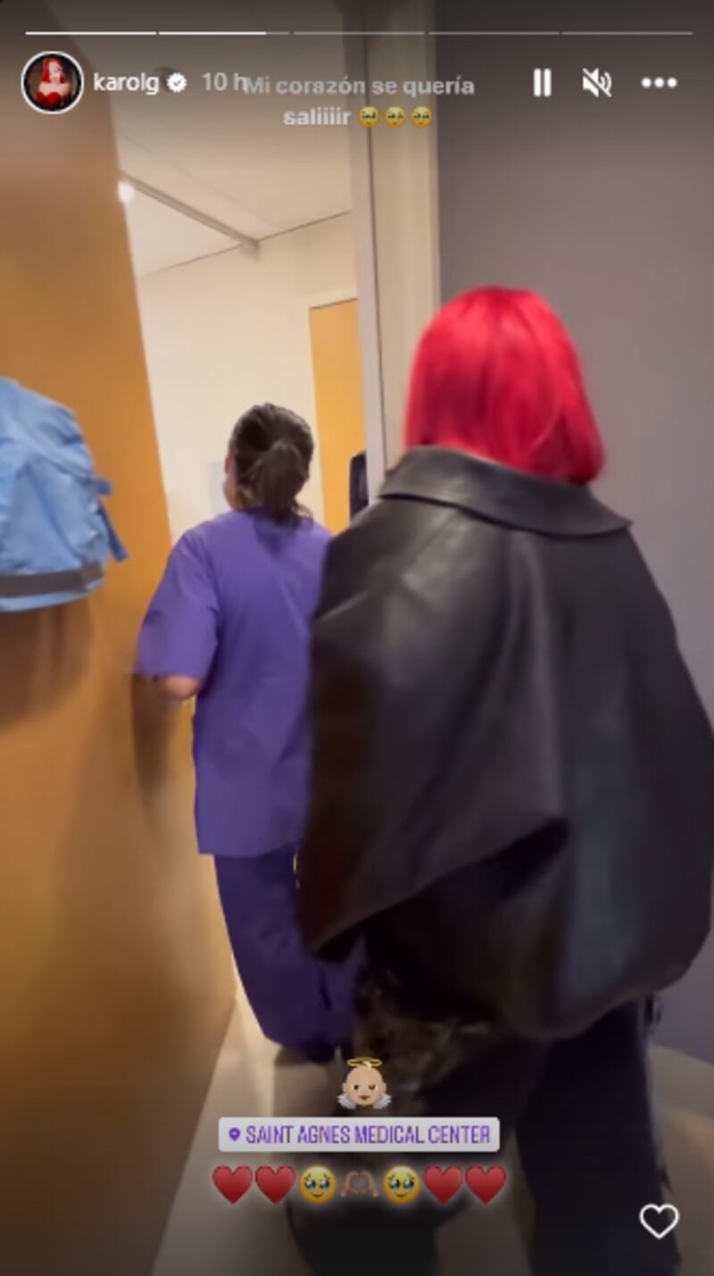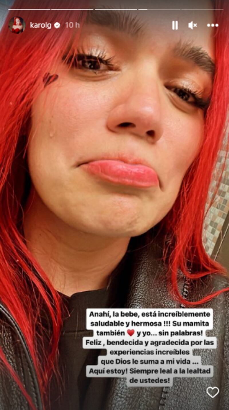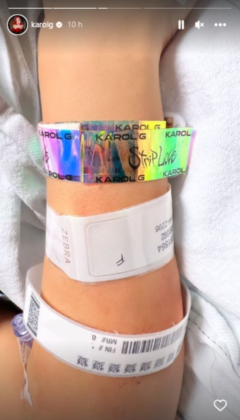 La artista compartió una fotografía en la que se vio que su seguidora aún tenía el brazalete del concierto de "La Bichota", además de la manilla del hospital. En la siguiente historia, Karol G subió una selfie donde se mostró muy conmovida por la situación y reveló el nombre de la recién nacida.