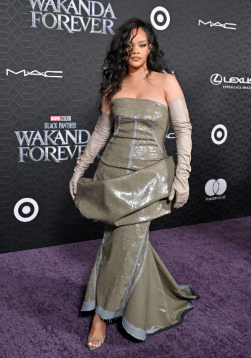 Su aparición en la alfombra llega un día después de que Rihanna anunciara su vuelta a la música con una nueva canción, después de seis años, que además es el tema principal de la cinta Pantera negra: Wakanda por siempre, misma que llegará a los cines el próximo 11 de noviembre.